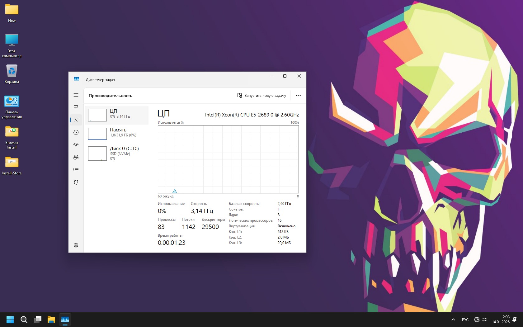 работает около 83 процессов,